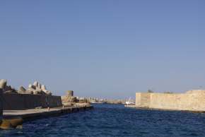 Die Einfahrt in den Hafen von Lerapetra ist nicht so einfach, man muss genau an den Untiefen entlang navigieren. Anlegen ist hier etwas abenteuerlich, da das Wasser stellenweise nur knapp ausreichend tief ist und starke Böen ins Hafenbecken stehen. Wir finden einen Platz längsseits einer Motorjacht. Wir haben Anker gesteckt damit wir beim Ablegen gegen den Winddruck auch wieder frei kommen