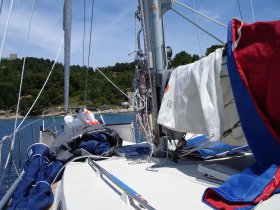 Nach den gestrigen nassen Segeltag, werden alle Segel aus den Backskisten genommen und getrocknet.