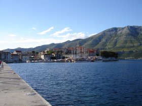 In der Nacht setzte starker Wind aus Nordost ein mit Böen bis zu 6 Bft ein. Der Himmel ist am Morgen mit dicken Wolken verhangen und es ist kalt. Es beginnt zu Regnen und die Gischt schlägt bis in unser Cockpit. Gestern Abend war der Hafen voll belegt, nun müssen alle Urlauber wieder Richtung Heimathafen ihre Schiffe zurück bringen, da Samstag immer der Übergabetag ist und die Häfen in der Regel weiter nördlich liegen. Nicht sehr angenehm bei den Wetterverhältnissen. Wir bleiben, wir müssen nirgendwo hin und liegen bald fast alleine an der Hafenmauer. Was macht man an einem solchen Tag? Lesen, Reiseführer und Seekarten studieren, Hörspiele anhören und dann doch mit dicken Regenjacken und Schirm durch die Altstadt laufen und ein Cafe suchen, in dem man auch drinnen sitzen kann; gar nicht so einfach, den auf diese Temperaturen ist die Gastronomie hier nicht eingestellt und bietet innen nur Katzentische.