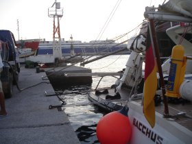 Wir liegen an der Aussenmole und bekommen nur den Schwell der Faehren und weniger den Laerm und die Abgase mit.