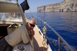 Das Wetter ist ruhig, wenig Wind und angenehm warm. Wir möchten heute zur Dwerja Bucht, knapp 8 Seemeilen westlich von Mgarr.