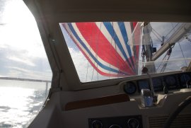 Neues Ziel ist Syrakus, ca. 50 Seemeilen. Früh machen wir uns auf den Weg. Es wird ein guter Segeltag, fast die ganze Strecke können wir mit der unterschiedlichten Besegelung zurücklegen. Wir haben, bis auf den Besan-Stag, alle Segel im Einsatz und ständig wechselnde Windrichtungen, aber das Meer ist ruhig, nur eine lange Dünung hebt Bacchus gleichmäßig auf und ab.