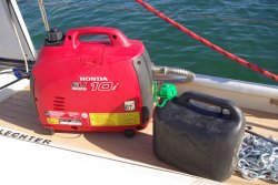Dann haben wir noch einen kleinen mobilen Generator. Der brummt zwar etwas lauter aber dafür macht er den Strom wesentlich preiswerter. Grob geschätzt um die 80 Cent pro Stunde.