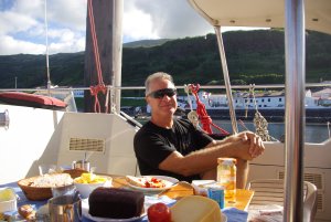 Nach einem ausgiebiges Frühstück mit einem zufriedenen Skipper