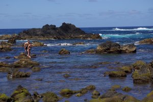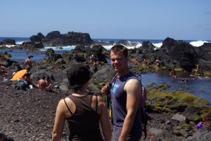 Auf dem Weg dorthin treffen wir auch auf die ‚Schattenseite’ im Paradies: Rabo de Peixe, ein überwiegend von Fischern bewohnter Ort, der nach dem Niedergang der Fischerei nun mit Armut zu kämpfen hat. Männern sitzen in den Kneipen und auf den Straßen, die Gebäude sind in ungewohnt schlechtem Zustand. Aber die vielen Kinder haben ihren Spaß, baden im Hafenbecken und jagen sich durch die Straßen. Ein Platz zum Verweilen ist dies allerdings nicht.