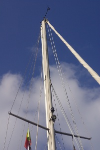 Anderthalb Tage mühsamer Kletter- und Kurbelarbeit haben wir gebraucht um ein Kabel in den Kabelkanal im Mast zu ziehen. 6-mal war Johannes oben, vier mal bis zu der Saling, zwei mal bis zur Mastspitze. Kaum zu glauben, aber nun hat die „alte Dame“ nach 30 Jahren endlich ein korrektes Topplicht. Nebenbei wurde noch ein fast durchgescheuertes Kabel repariert und das alte Ankerlicht durch ein neues ersetzt.