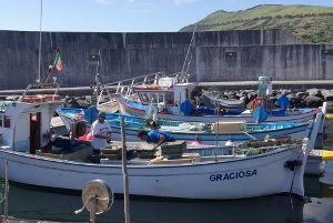 Unser „Nachbar“ schenkt und 5 superfrische Fische und unser letztes Abendessen auf Graciosa ist gesichert.