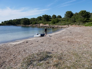 Punkt der Insel tief nach Süden ins Land einschneidet. Es gibt dort eine kleine Marina, nicht empfehlenswert, Bojen, alle besetzt, aber zum Glück viele Möglichkeiten zu ankern. Der Ankergrund ist Schlick und Seegras und hält nicht besonders gut. Aber bei wenig Wind und einer Tiefe von 3-4 Metern kein Problem.
