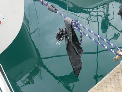 Rückwärtsgang rein und zurück. Und nun bleibt nur eine Alternative: Unser nächstes Ziel anpeilen, Vito Valentia. Dort liegt ein größerer Hafen mit drei kleineren Marinas. Da ist eine Ansteuerung im Dunklen kein Problem und sicher finden wir dort einen freien Platz. Also nochmal 4 Stunden dranhängen. Segelnd und mit Motor erreichen wir (trotz Plastiktüte im Propeller die wir uns kurz vor dem Ziel eingefangen haben) um 21:30 den Hafen Vibo Marina. Die Ansteuerung ist kein Problem und und in Marina Carmelo werden wir nach unserem Anruf schon erwartet. Die größte Schwierigkeit ist es im Dunklen die Lampe des Chefs auszumachen und den uns zugeteilten Liegeplatz zu finden. Nach zweimal kurven gelingt uns das auch und um 22:00 sind wir fest, müde und hungrig und froh den langen Schlag gut hinter und gebracht zu haben.