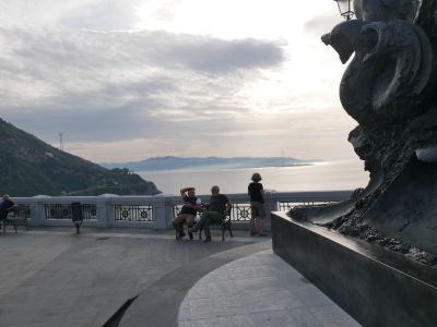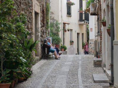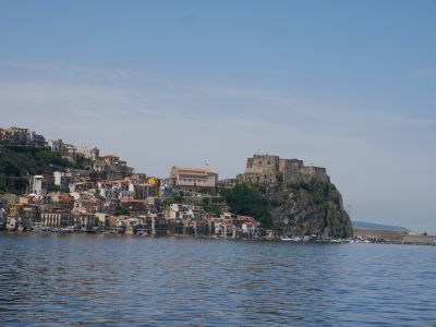 Wieder schlendern wir durch schmale Gässchen und Treppen den Berg hoch.Über dem Ort thront das Kastell der Familie Ruffo, die lange Zeit über die Stadt herrschte. Der Sage nach lebten hier an der Einfahrt zur Straße von Messina das Ungeheur Scilla und auf der gegenüberliegenden Seite Charybdis. Beide machten es den Seefahrern schwer, die Straße zu passieren.