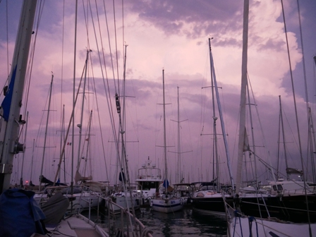 Noch ein kurzer Badestopp am Strand und dann schnell zur Marina zurück, der Himmel verdunkelt sich schlagartig und es sieht nach einem Gewitter aus.