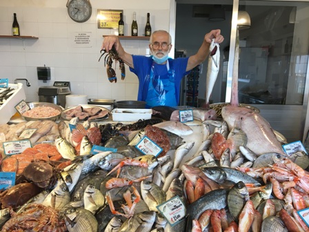 Direkt daneben ein kleiner Fischhändler mit einer unglaublichen Vielfalt an Fisch.